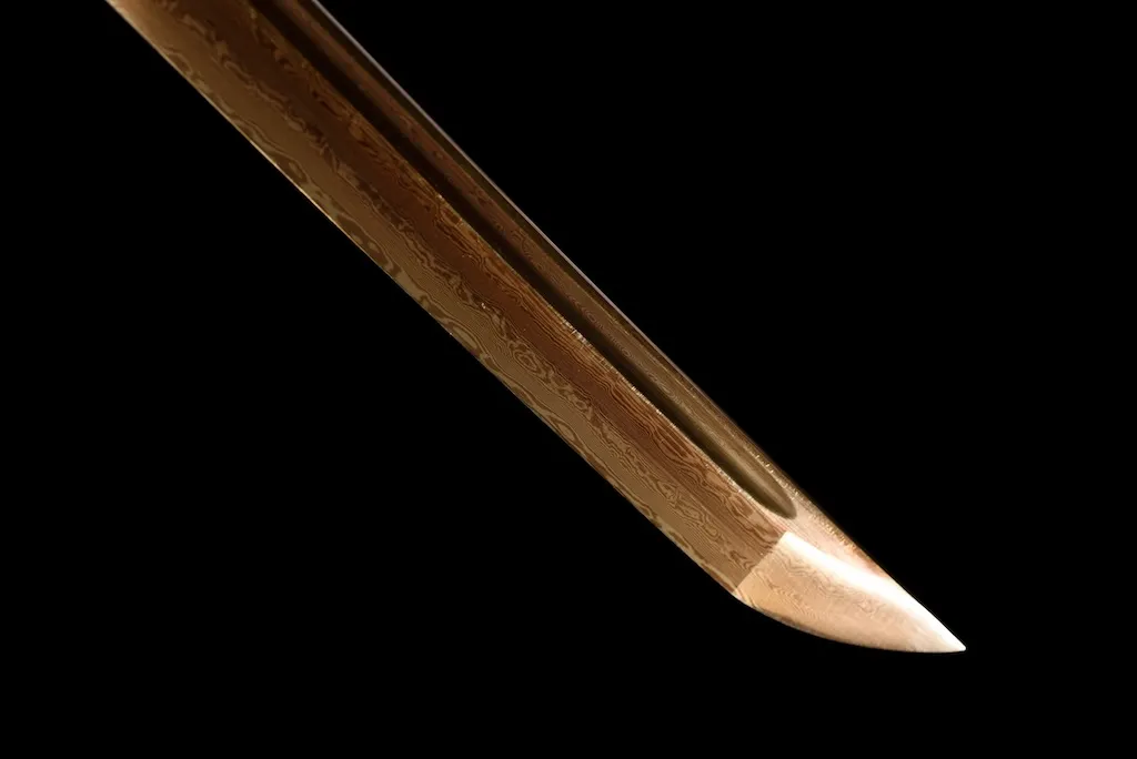 Katana – Gold-Tempered Damascus Steel Blade with Meteorite-Pattern Copper Mounts | Amaterasu Edition